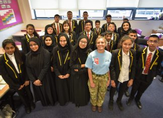 RAF Sergeant Wazeeha Laher spoke to pupils at two local schools, Madani School and Crown Hills Community College, her former school, as part of the UK-wide RAF100 celebrations.